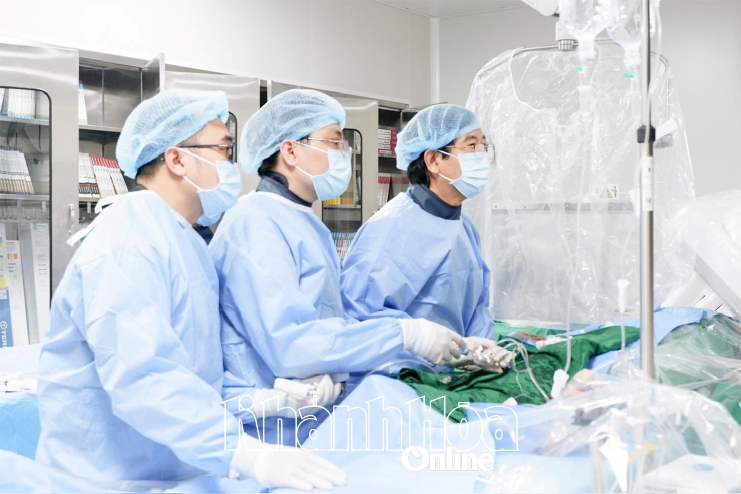 Đoàn chuyên gia Bệnh viện Đa khoa tỉnh Khánh Hòa chuyển giao kỹ thuật can thiệp tim mạch cho Bệnh viện Đa khoa Thiện Hạnh (Đắk Lắk). Ảnh: KH