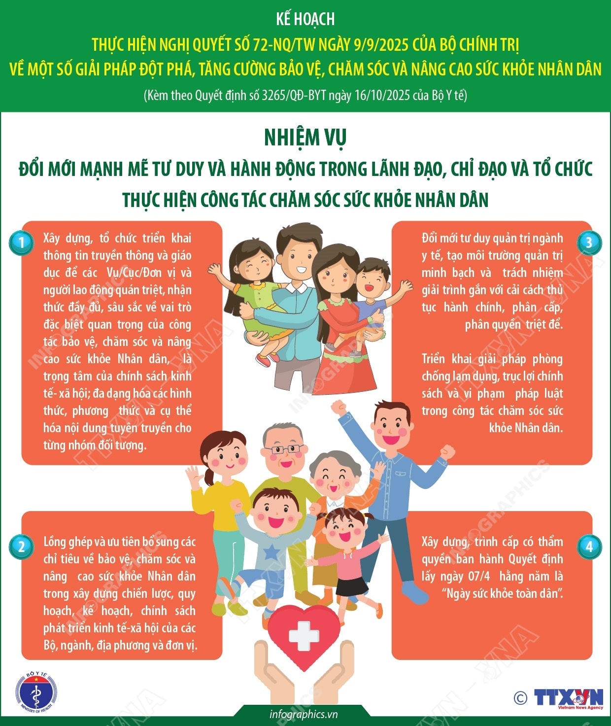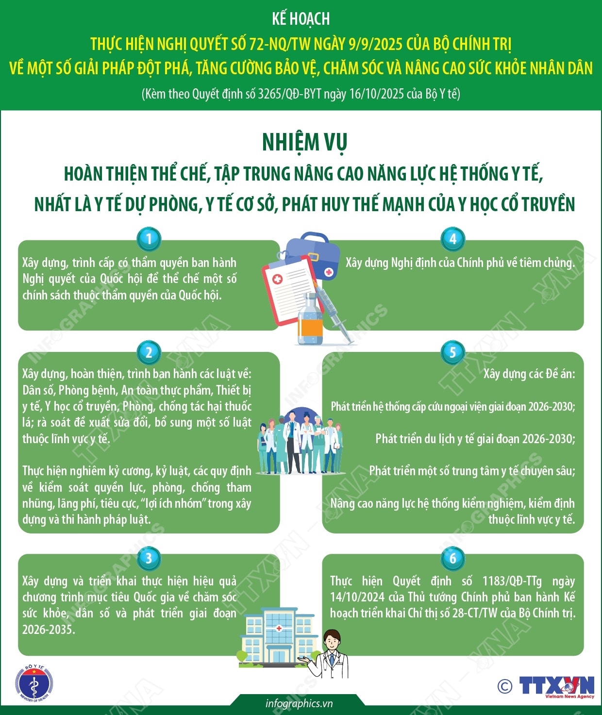 Bộ Y tế ban hành kế hoạch thực hiện Nghị quyết số 72-NQ/TW ngày 09/9/2025 của Bộ Chính trị về một số giải pháp đột phá, tăng cường bảo vệ, chăm sóc và nâng cao sức khỏe nhân dân.