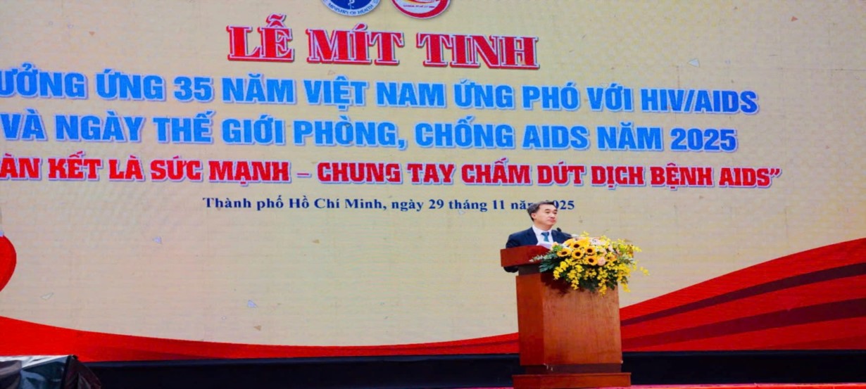 Sáng 29/11/2025, tại TP. Hồ Chí Minh, Ủy ban Quốc gia phòng, chống AIDS, ma túy, mại dâm phối hợp Bộ Y tế và UBND TP. Hồ Chí Minh tổ chức mít tinh cấp quốc gia hưởng ứng 35 năm Việt Nam ứng phó với HIV/AIDS và Ngày thế giới phòng, chống AIDS năm 2025 (1-12-2025) với chủ đề “Đoàn kết là sức mạnh – Chung tay chấm dứt dịch bệnh AIDS”.