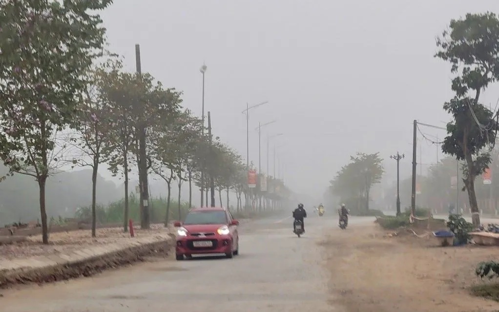 Nhiều tuyến đường ở thành phố Hưng Yên vẫn dày đặc sương mù, chất lượng không khí kém. Ảnh tư liệu
