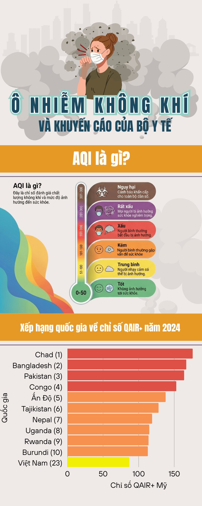 - Bộ Y tế: Khuyến cáo về phòng chống ảnh hưởng của ô nhiễm không khí