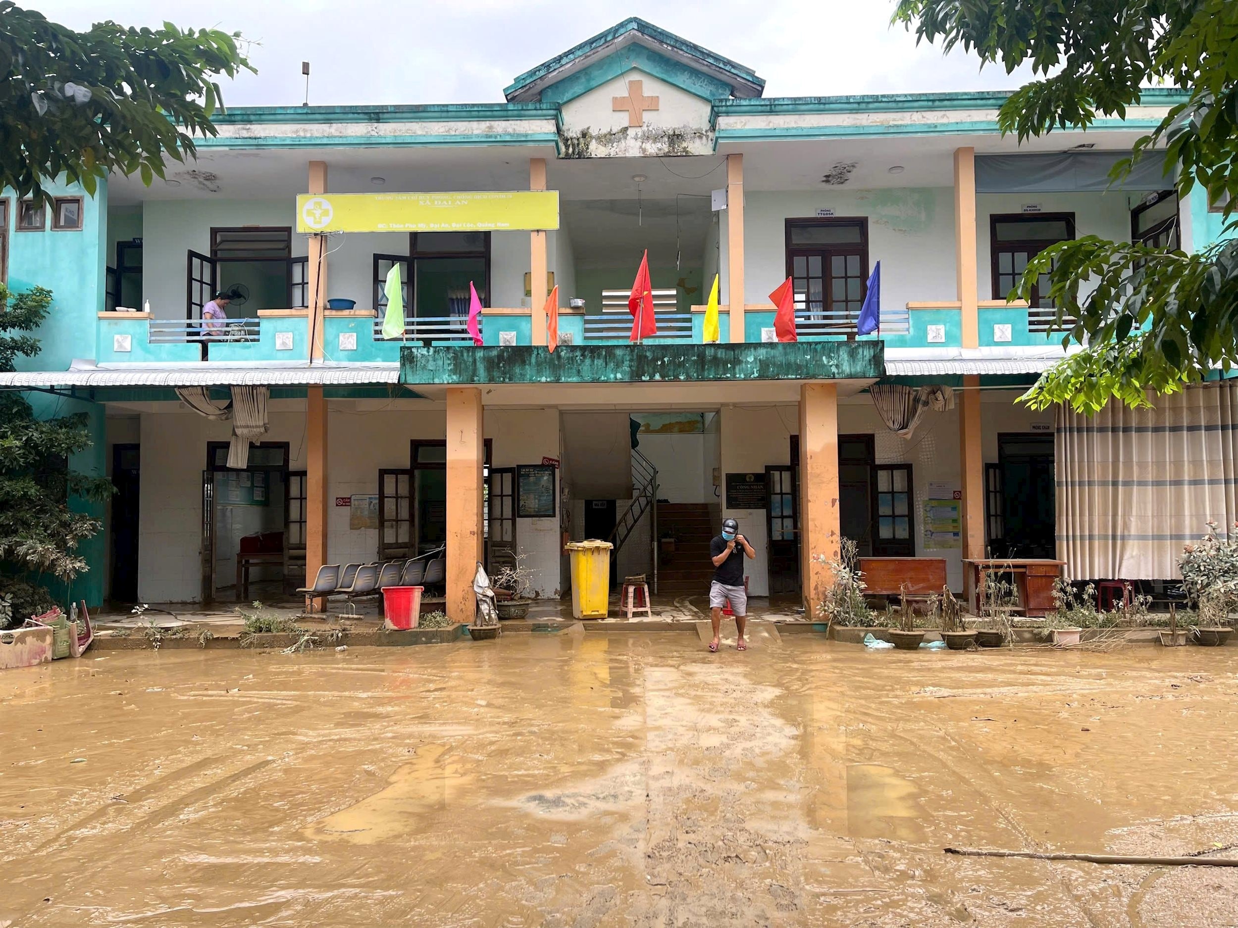 Mưa lũ khiến nhiều cơ sở y tế bị nhấn chìm trong nước.