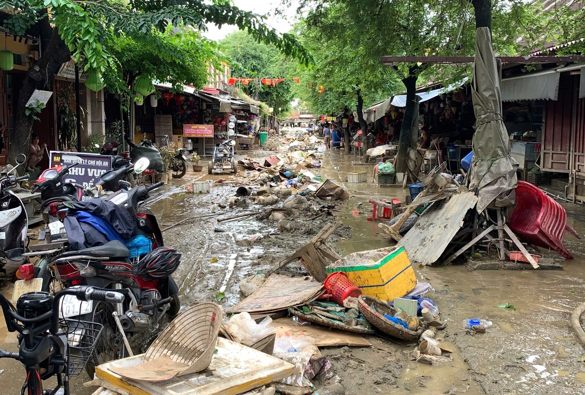 Một góc chợ Hội An ngập trong rác sau khi nước vừa rút ngày 31/10.