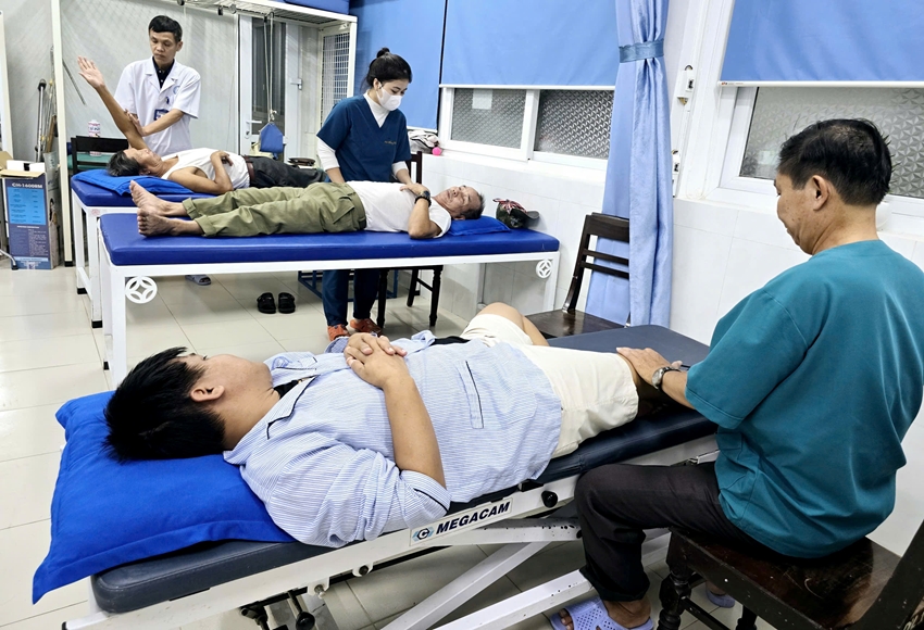 ThS.BS Nguyễn Khoa Nguyên, Giám đốc Bệnh viện PHCN TP. Huế, cho biết sau khi di chuyển 27 bệnh nhân nội trú từ cơ sở 2 về cơ sở chính, bệnh viện đã huy động tối đa nhân lực, thuốc men, trang thiết bị để điều trị và tập PHCN cho bệnh nhân cùng 34 trường hợp đang điều trị tại chỗ. “Dù công suất giường bệnh tăng gần gấp đôi, chúng tôi vẫn đảm bảo chỗ nằm, bố trí linh hoạt một số phòng ghép đôi bệnh nhân. Đồng thời yêu cầu y bác sĩ tuyệt đối không cho bệnh nhân ở vùng ngập sâu xuất viện trong thời điểm này để đảm bảo an toàn,” bác sĩ Nguyên khẳng định.