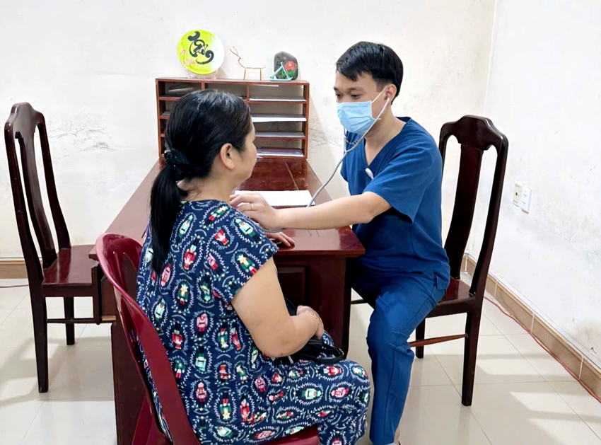 Bà Nguyễn Thị Minh, trú xã Đan Điền cho hay: “Nhà tôi ngập hơn một mét, được lực lượng chức năng đưa đến trung tâm tránh lũ. Các bác sĩ chăm sóc, động viên nên tôi thấy rất yên tâm.”