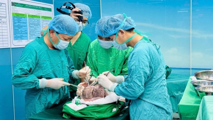 Các bác sĩ thực hiện ca ghép phổi tại Bệnh viện Phổi Trung ương.