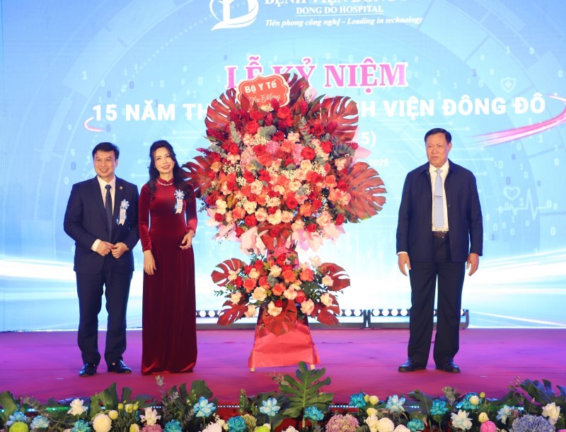 Phát biểu chúc mừng tập thể cán bộ quản lý, bác sĩ, nhân viên y tế Bệnh viện Đông Đô, Thứ trưởng Bộ Y tế Đỗ Xuân Tuyên ghi nhận những nỗ lực và thành quả đạt được trong đầu tư cơ sở vật chất, trang thiết bị y tế, nhân lực phục vụ khám, chữa bệnh, chăm sóc sức khỏe cộng đồng và lấy người bệnh làm trung tâm tại đơn vị 15 năm qua. "Tôi đánh giá những thành quả của bệnh viện không chỉ mang lại hiệu quả điều trị cao cho bệnh nhân trong nước mà còn góp phần hạn chế tình trạng người dân phải ra nước ngoài chữa bệnh. Bệnh viện trở thành điểm đến của nhiều bệnh nhân quốc tế và kiều bào, góp phần tích cực vào phát triển du lịch y tế", Thứ trưởng Bộ Y tế nói.
