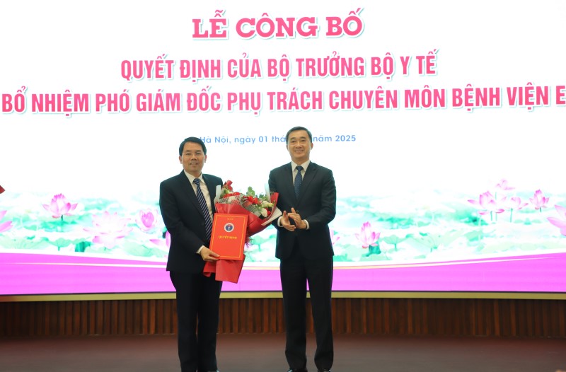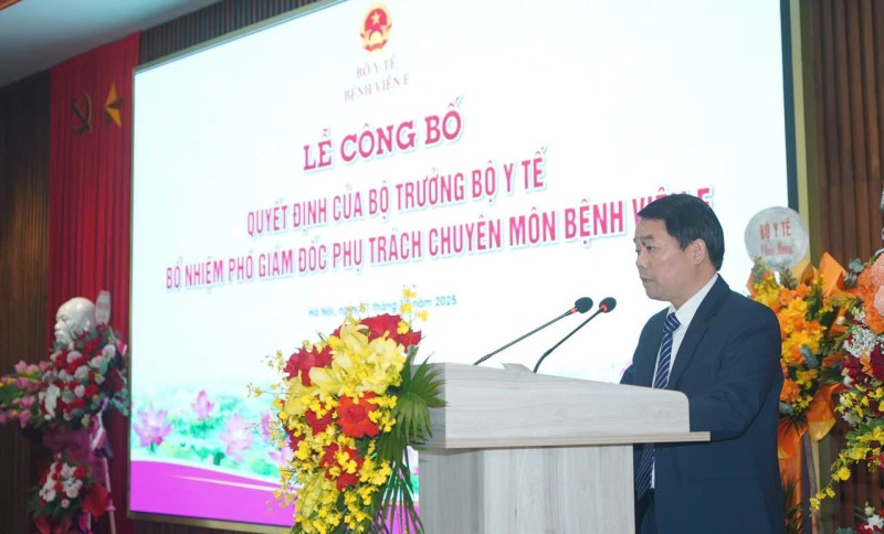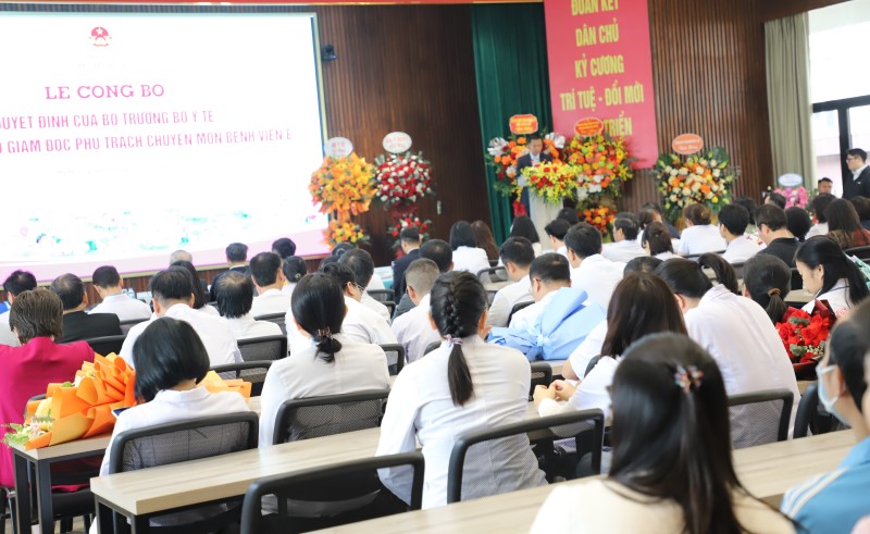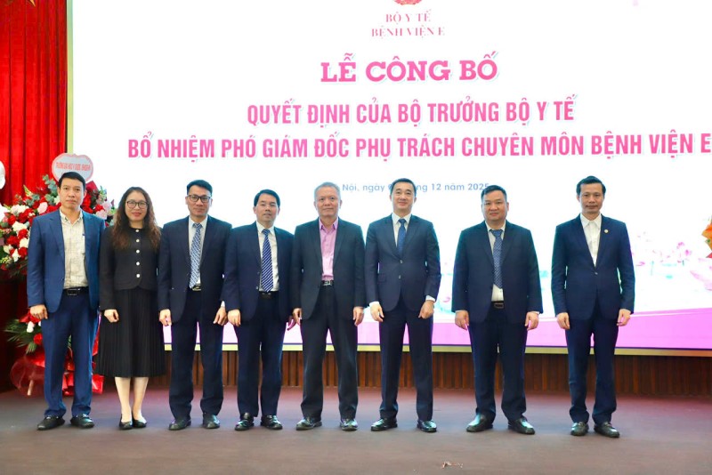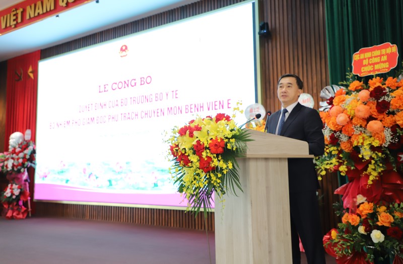 Tại buổi lễ, thừa ủy quyền của Bộ trưởng Bộ Y tế, TS.BS Trần Văn Khanh, Phó Vụ trưởng Vụ Tổ chức Cán bộ, Bộ Y tế công bố Quyết định số 3573/QĐ-BYT ngày 19/11/2025 của Bộ trưởng Bộ Y tế về việc bổ nhiệm chức vụ Phó Giám đốc phụ trách chuyên môn Bệnh viện E đối với TS. BS Vũ Hồng Anh, Trưởng khoa Khám bệnh, chữa bệnh theo yêu cầu và quốc tế, bệnh viện E. Thời hạn giữ chức vụ 05 năm, kể từ ngày quyết định có hiệu lực.