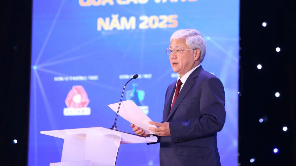 Đồng chí Đỗ Văn Chiến, Ủy viên Bộ Chính trị, Bí thư Trung ương Đảng, Chủ tịch Ủy ban Trung ương Mặt trận Tổ quốc Việt Nam trao Giải thưởng Khoa học công nghệ Quả cầu vàng năm 2025 tặng các cá nhân tiêu biểu.