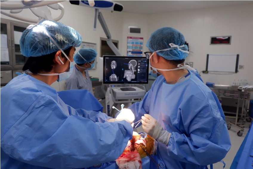 Đầu tiên, các bác sĩ Ngoại Thần kinh sử dụng hệ thống định vị Navigation – công nghệ hoạt động như “Google Maps trong phẫu thuật”, giúp xác định chính xác vị trí khối u và các cấu trúc não lành, từ đó loại bỏ khối u an toàn, bảo tồn tối đa mô não chức năng.