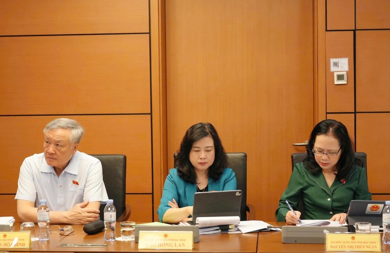 Phó Thủ tướng Thường trực Chính phủ Nguyễn Hòa Bình, Bộ trưởng Bộ Y tế Đào Hồng Lan và các ĐBQH thuộc tỉnh Bắc Ninh và Cà Mau dự thảo luận.