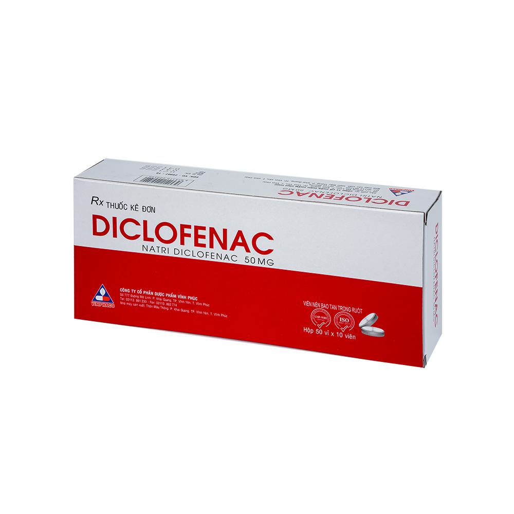 Hình ảnh minh họa về loại viên nén bao phim tan trong ruột Diclofen (Diclofenac natri 50mg).