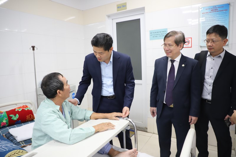 Trước khi làm việc, Thứ trưởng Thường trực Bộ Y tế Vũ Mạnh Hà trực tiếp đi kiểm tra, thăm nắm tình hình hoạt động khám, chữa bệnh tại các khoa, phòng của bệnh viện; đồng chí gặp gỡ, thăm hỏi ân cần và động viên tinh thần, tặng quà tới một số bệnh nhân điều trị tại Bệnh viện.