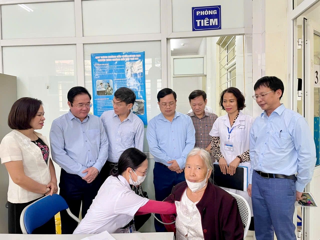 Đoàn đã kiểm tra thực tế cơ sở vật chất, quan sát hoạt động khám chuyên môn, công tác khám chữa bệnh, tiêm chủng tại Trạm Y tế xã Nam Phù. Ảnh: Phương Xuyến
