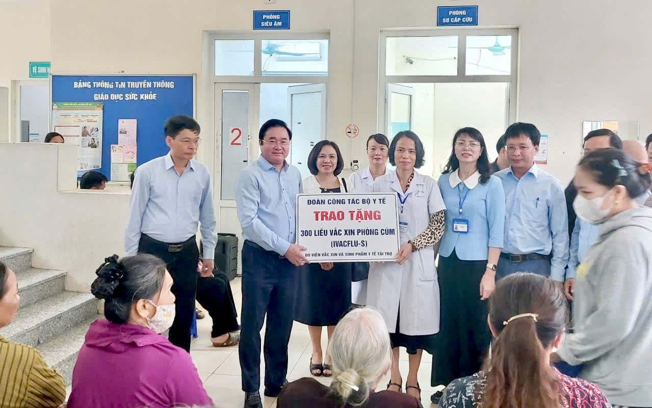 Đoàn công tác của Bộ Y tế đã trao tặng 300 liều vắc xin phòng cúm (IVACFLU-S) cho Trạm Y tế xã Nam Phù. Ảnh: Phương Xuyến