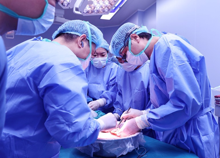 Các bác sĩ tiến hành lấy tạng hiến.