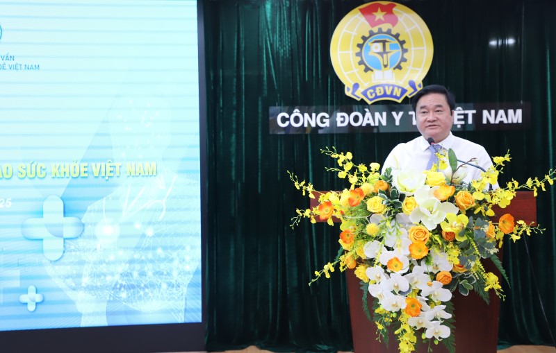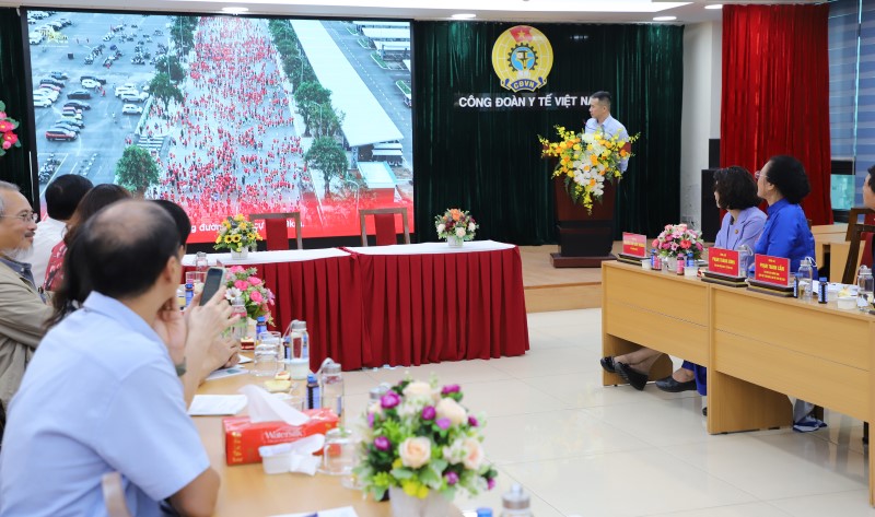 PGS.TS Phạm Thanh Bình, Chủ tịch Công đoàn Y tế Việt Nam, Chủ tịch Hiệp hội Tư vấn Nâng cao Sức khỏe Việt Nam phát biểu
