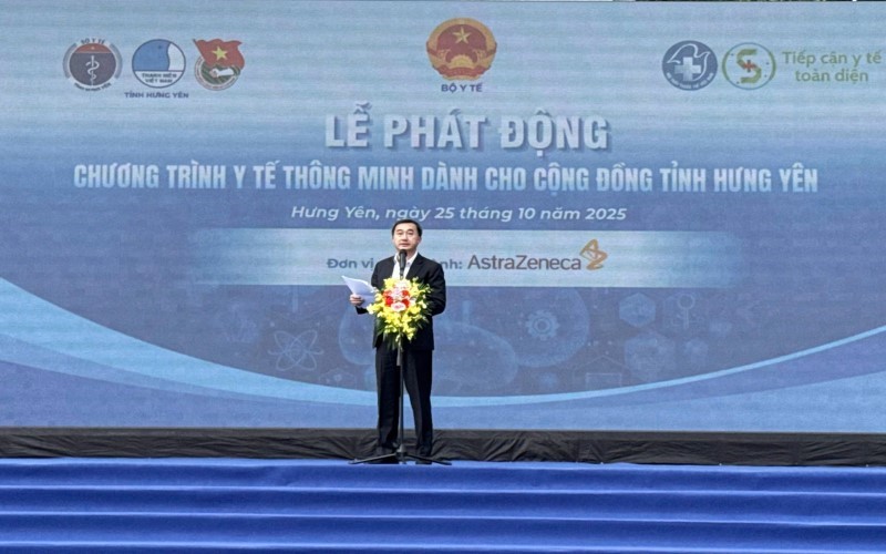 Chiều 25/10/2025, tại tỉnh Hưng Yên, Hội Thầy thuốc trẻ Việt Nam và Cục Quản lý Khám chữa bệnh, Bộ Y tế phối hợp tổ chức chương trình “Tiếp cận y tế toàn diện – Vì một Việt Nam khỏe mạnh hơn năm 2025” và Lễ phát động “Chương trình y tế thông minh dành cho cộng đồng tỉnh Hưng Yên”. GS.TS Trần Văn Thuấn, Thứ trưởng Bộ Y tế, Chủ tịch Hội đồng Y khoa Quốc gia dự và phát biểu tại chương trình. Dự chương trình còn có đồng chí Phạm Văn Nghiêm, Phó Chủ tịch UBND tỉnh Hưng Yên, đại diện lãnh đạo một số Cục, Vụ thuộc Bộ, Hội Thầy thuốc trẻ Việt Nam, Sở, ban ngành liên quan của tỉnh Hưng Yên và AstraZeneca Việt Nam.