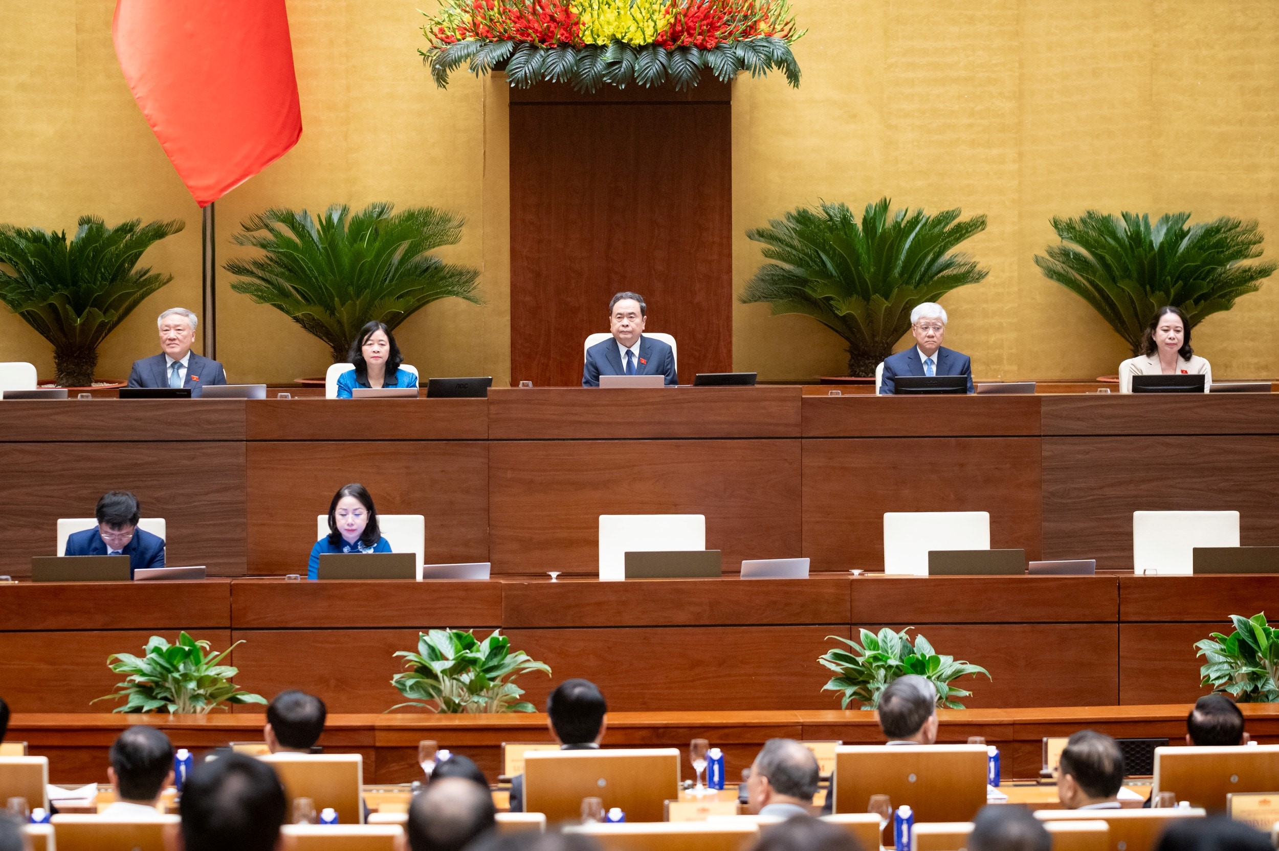 Tham dự tại điểm cầu chính, Hội trường Diên Hồng, Nhà Quốc hội còn có: lãnh đạo Đảng, Nhà nước, Quốc hội, Ủy ban Trung ương Mặt trận Tổ quốc Việt Nam; các Phó Chủ tịch Quốc hội và các Ủy viên Ủy ban Thường vụ Quốc hội; các Phó Thủ tướng Chính phủ; đại diện lãnh đạo các ban Đảng Trung ương, Tòa án nhân dân tối cao, Viện kiểm sát nhân dân tối cao; đại diện Văn phòng Chủ tịch nước, Văn phòng Chính phủ, Bộ Nội vụ, Bộ Tư pháp, Bộ Tài chính, Bộ Văn hóa, Thể thao và Du lịch, Bộ Khoa học và Công nghệ, Bộ Quốc phòng, Bộ Công an, Thanh tra Chính phủ, Thường trực Hội đồng Dân tộc, các Ủy ban của Quốc hội, Văn phòng Quốc hội; thành viên các Tiểu ban của Hội đồng Bầu cử quốc gia, Văn phòng Hội đồng Bầu cử quốc gia; các đồng chí lãnh đạo tỉnh ủy, thành ủy, Hội đồng nhân dân, Ủy ban nhân dân, Ủy ban mặt trận Tổ Quốc, Đoàn đại biểu Quốc hội các tỉnh, thành phố và chuyên viên trực tiếp tham mưu phục vụ bầu cử.